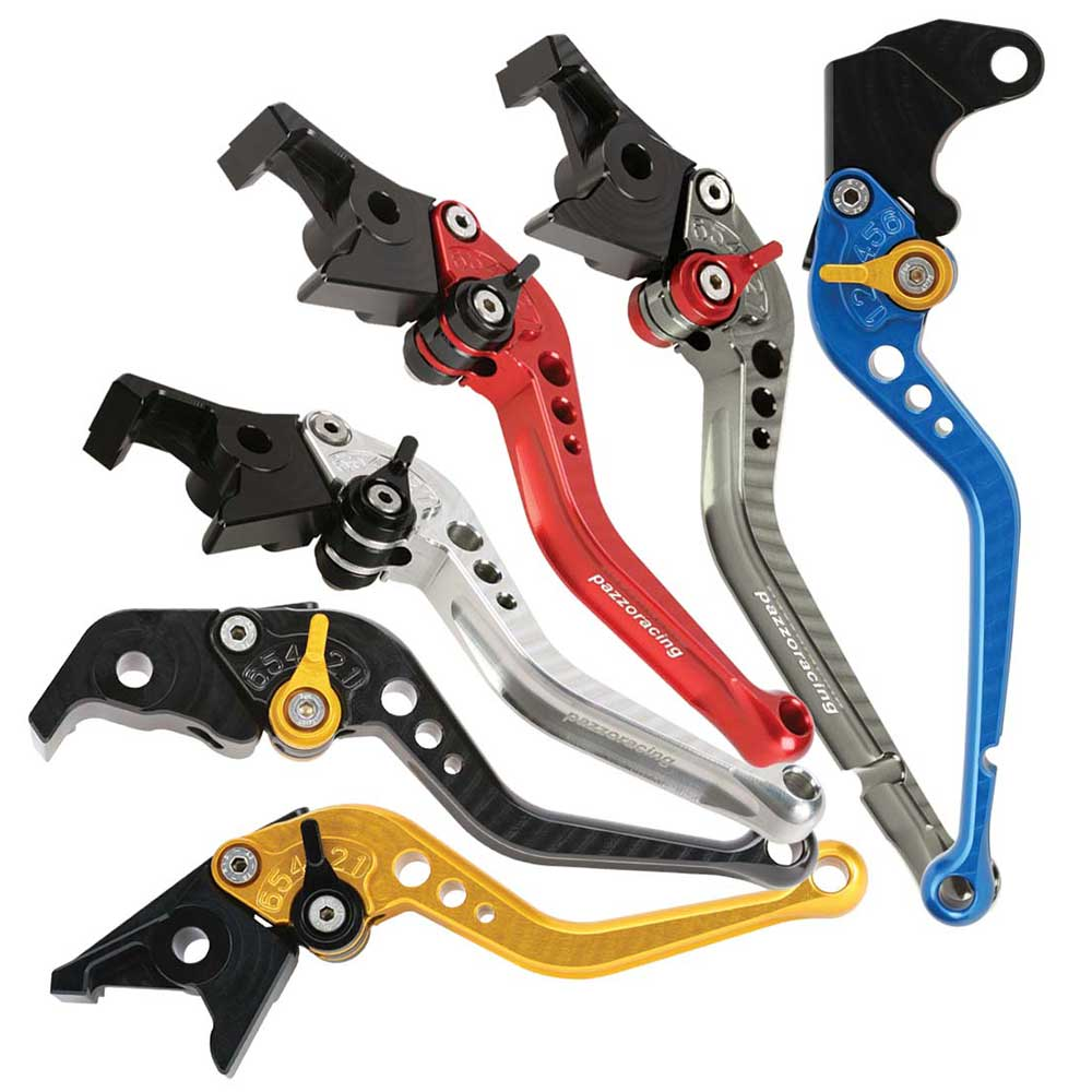Bremshebel, Kupplungshebel und Versteller sind in vielen verschiedenen Farben lieferbar. Alle Teile sind frei wähl- und kombinierbar. Pazzo Racing Hebel und Komponenten sind einzeln erhältlich. So können die Hebel einfach an ein anderes Fahrzeug übernommen werden. Pazzo Racing Brems- und Kupplungshebel sind in starrer und klappbarer Ausführung erhältlich, sowie in langer und kurzer Hebelform.